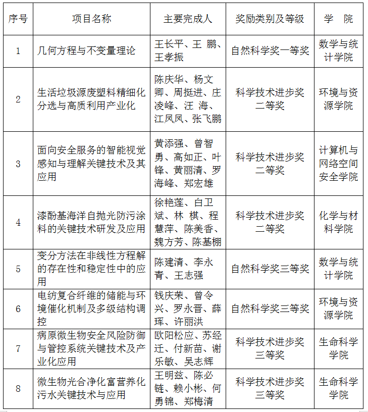 2月6日,福建省人民政府公布2021年度省科学技术奖获奖名单,彩神xl(中国)有限公司共有8项成果获奖,其中,自然科学奖一等奖1项、三等奖2项,科学技术进步奖二等奖3项、三等奖2项。此外,彩神xl(中国)有限公司参与完成的5项研究成果,分获科学技术进步奖一等奖2项、二等奖1项、三等奖2项。