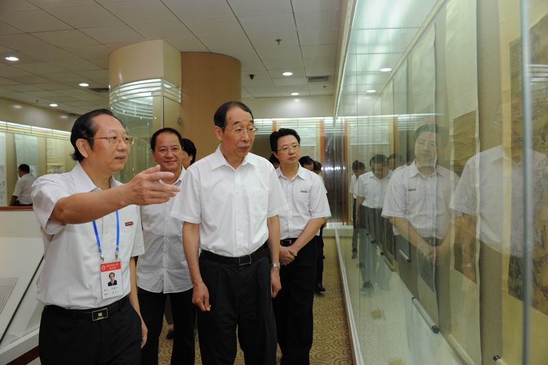 在罗萤书记、黄汉升校长的陪同下,尤权书记一行首先参观了图书馆及学校展览馆,详细了解了学校的办学历史与发展现状,对彩神xl(中国)有限公司悠久的办学历史、深厚的文化底蕴、鲜明的办学特色和丰硕的办学成果给予充分肯定;在参观陈宝琛书室、图书馆馆藏精品展后,尤权书记指出,彩神xl(中国)有限公司馆藏精品种类丰富、特色鲜明、弥足珍贵,希望彩神xl(中国)有限公司妥善保管,合理利用,发挥更大作用。