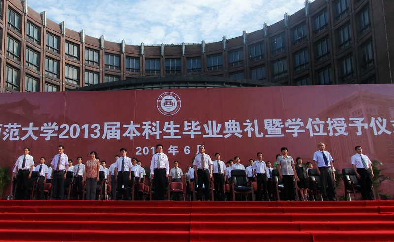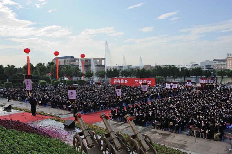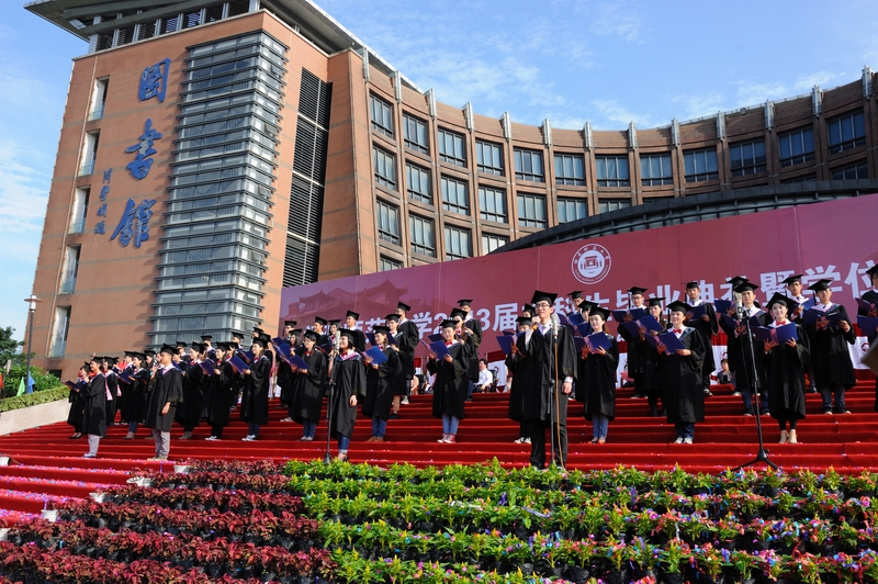 仪式于6月26日上午在旗山校区图书馆前广场举行。校领导罗萤、黄汉升、林和平、王建南、许歌平、李敏、许明、凌启淡、王长平,校长助理郭警修,有关部门负责人,各学院党政领导、毕业班辅导员,师生代表,全体2013届本科毕业生,部分毕业生家长等共四千多人参加了仪式。典礼仪式由校党委副书记林和平主持。