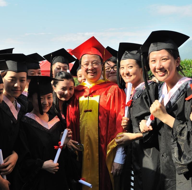 黄汉升校长亲自为全体毕业生执行了“拨穗礼”,并逐一合影留念。