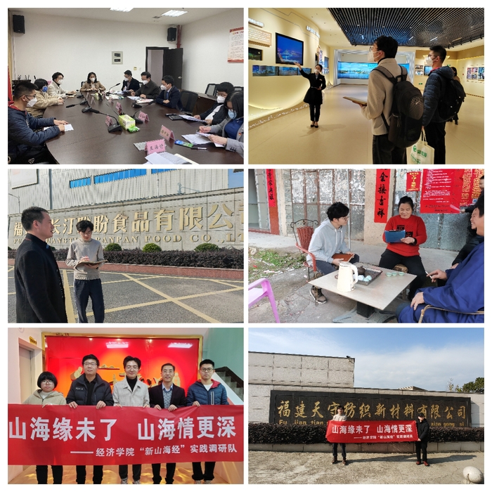 为进一步探求晋江长汀“山海协作”的协作样板与经验示范,经济学院“新山海经”实践调研队前往两地开展以“山海缘未了,山海情更深”为主题的寒假社会实践活动。实践队在晋江农业农村局、晋江市委党校、内坑镇、磁灶镇等地开展学习调研,通过与当地负责人深入沟通,实践队深刻领悟到理论知识与社会实际相结合的重要性。随后,实践队来到长汀县探访盼盼食品、天守集团、得力机电等当地民营企业,进行问卷调查与分析。在长汀南山镇、河田镇、铁长乡等地,实践队走访当地镇政府,采访当地干部,深入观察乡镇的现状和建设,了解走进古村落体验当地风土人情,感受乡村振兴下村落的翻天覆地的变化。农村经济发展之迅猛,乡村面貌变化之巨大,让实践队对“山海协作”模式有了更深刻的理解和感悟。