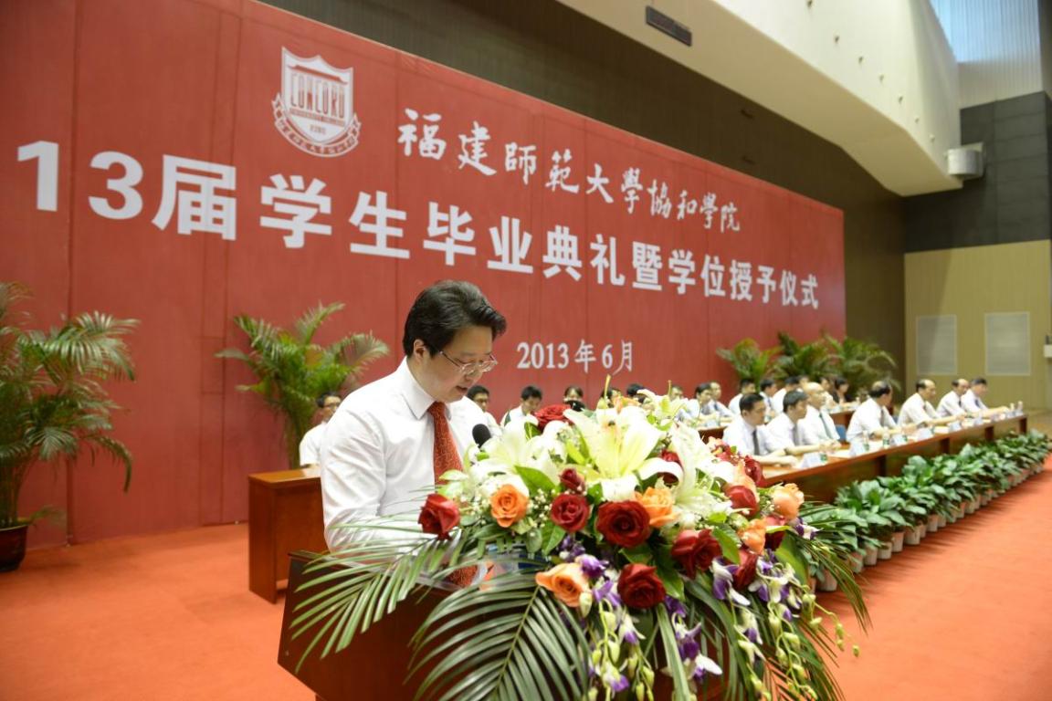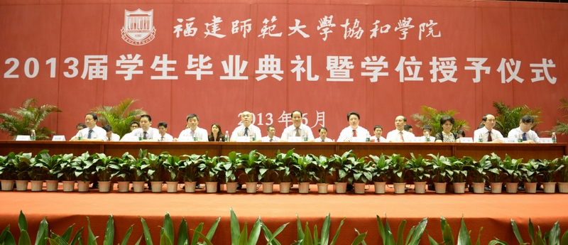 仪式于6月23日下午在大学城共享区体育馆举行。校党委书记罗萤,校长黄汉升,副校长、协和学院党委书记许明,协和学院副董事长、部分董事,院党政领导、各系主任及党总支书记、教师代表、毕业班辅导员、部分学生家长以及协和学院2013届本科毕业生参加了典礼。