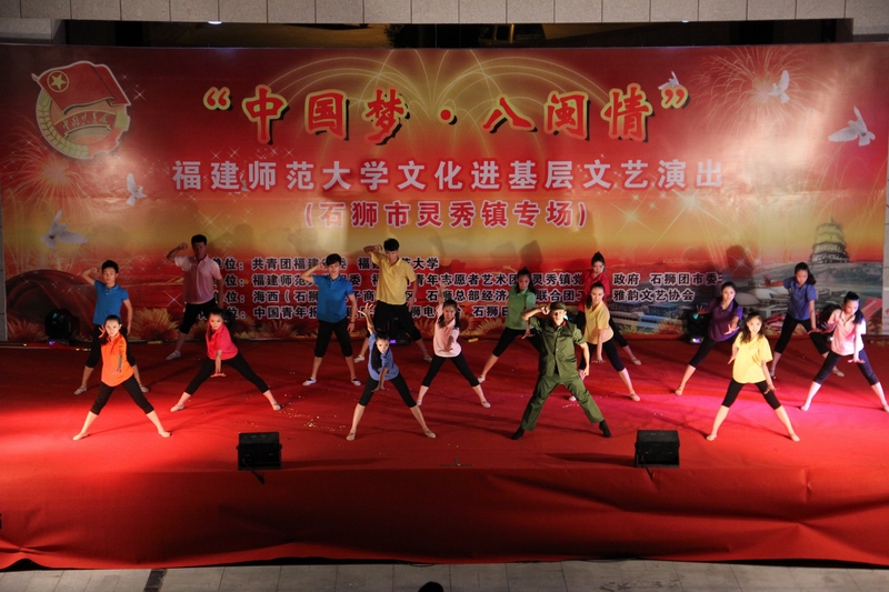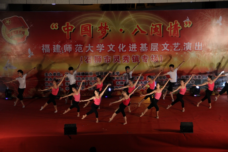 7月9日至12日,由团省委和彩神xl(中国)有限公司共同主办的“中国梦·八闽情”暑期大学生文化进基层社会实践文艺演出先后在泉州、莆田、龙岩、福州等地举行。福建省青年志愿者艺术团,彩神xl(中国)有限公司音乐学院、体育科学学院和传播学院的56名大学生参加了演出。