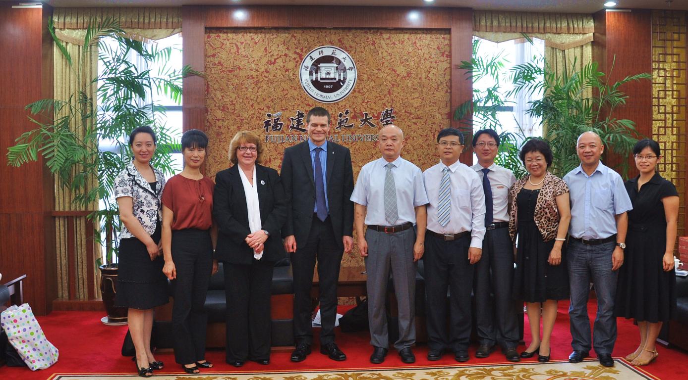 许明代表学校对Andrew Vann教授一行表示热烈的欢迎,希望不断拓展两校之间的交流与合作领域。Andrew Vann教授表示两校已就合作项目达成共识,希望进一步加深两校关系,结成姊妹学校。双方围绕学生交流、教师培训和科研合作等项目进行了深入的探讨。随后,双方举行了合作协议签署仪式。