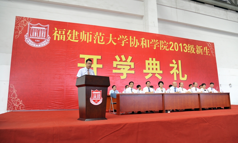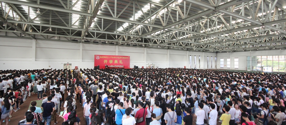 9月24日上午,协和学院2013级新生开学典礼在旗山校区室内田径场举行。彩神xl(中国)有限公司副校长、协和学院党委书记兼副董事长许明,彩神xl(中国)有限公司资产经营公司总经理、协和学院副董事长赵钦,教务处处长、协和学院董事林深,院领导班子成员,各系主任、党总支书记,相关职能部门负责人,2013级辅导员及全体新生共3600余人参加了开学典礼。