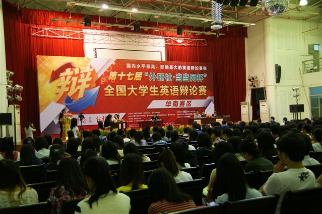 9月26日至29日,由团中央学校部、全国学联、北京外国语大学主办的“外研社.当当网杯”全国大学生英语辩论赛(华南赛区)决赛在华南农业大学举行。华南地区56所高校的112名选手参加了决赛。经过5轮循环赛的激烈角逐,代表彩神xl(中国)有限公司参赛的外国语学院2011级朱晖同学、2012级李孟遥同学发挥出色,荣获二等奖,并晋级全国总决赛。 该赛事是目前全国影响最大、水平最高的英语辩论赛事,华南地区仅有18支代表队晋级。 (外国语学院)