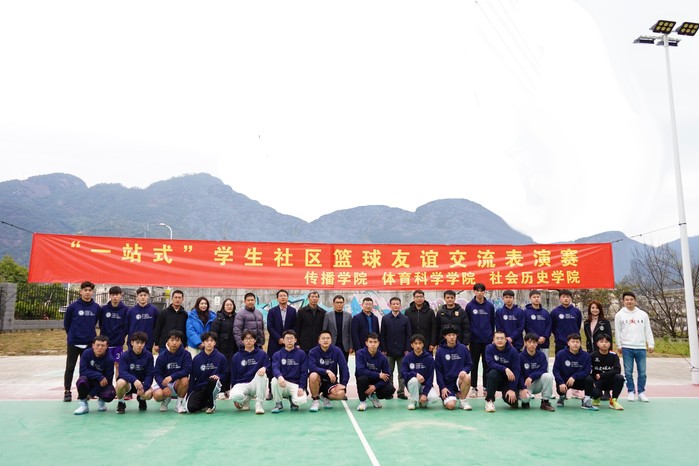2月22日下午,传播学院、体育科学学院、社会历史学院联合在南区灯光球场举办“一站式”学生社区篮球友谊交流表演赛。校党委副书记涂荣,学工部副部长汪启思,后勤管理处副处长黄滨,基建处总工林述喜,校团委科长金程远,体育科学学院钟晓波副书记,社会历史学院副院长孙建党,传播学院副书记谢秀俤,以及南区学院师生约100多人参加本次活动。活动由2021级播音主持专业陈佳欣主持。