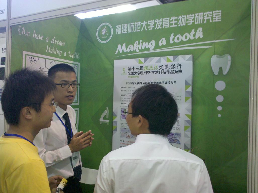 其中,获得二等奖的2项作品是:《闽台文化产业专业人才培养模式比较及其互补性前瞻》(文学院,作者:文学院朱春洁、蔡惠君、林辰靓、郑宇然、陈晨、赵呈霁、潘茸绒,指导老师:文学院李诠林、葛桂录、周云龙、尚光一);《FGF8对人类牙齿器官发育速率的调控作用》(生命科学学院,作者:生命科学学院庄桂、陈伟洪,指导老师:生命科学学院胡雪峰、郑若男、张彦定)。大赛第13期简报还以《“小闽哥”携手“阿台妹”:两岸文化产业专业探索》为题,专文报道了彩神xl(中国)有限公司文学院作品,并给予高度评价。