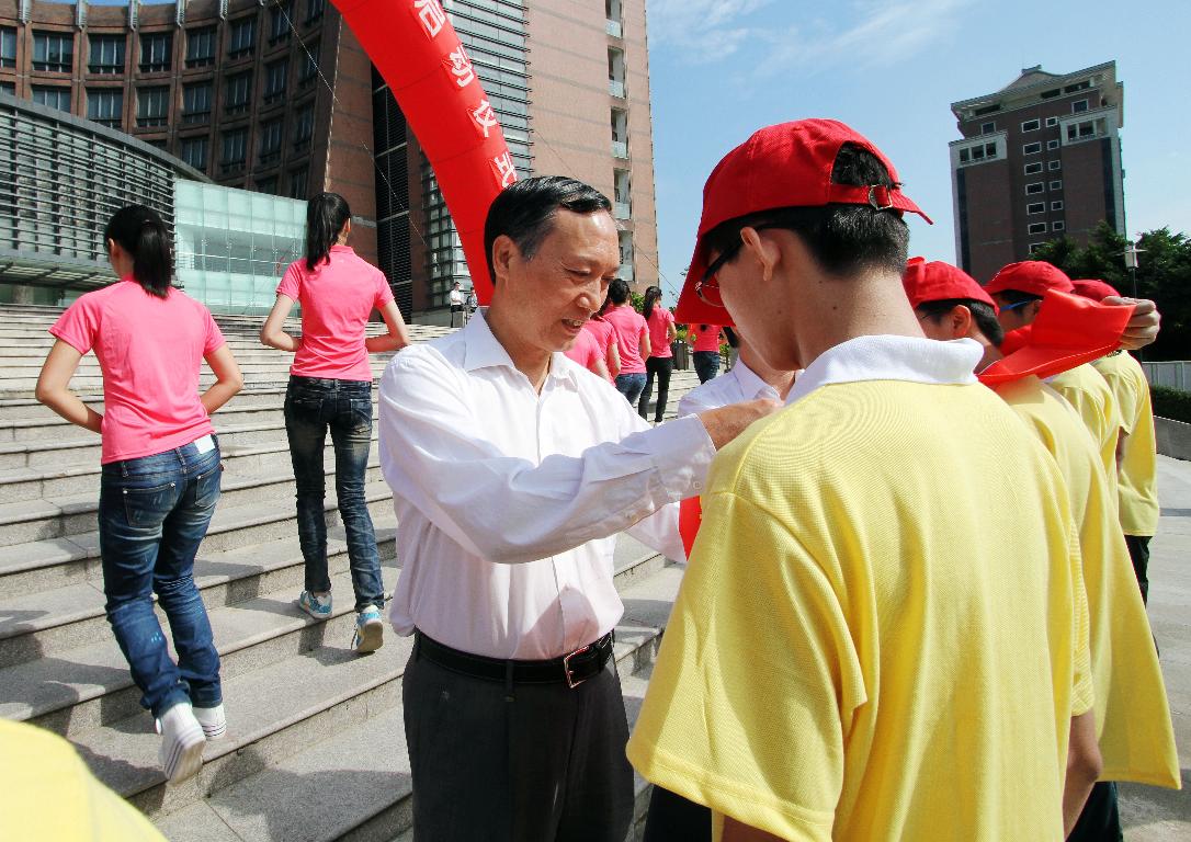 省委常委、宣传部长袁荣祥为彩神xl(中国)有限公司志愿者佩戴绶带
