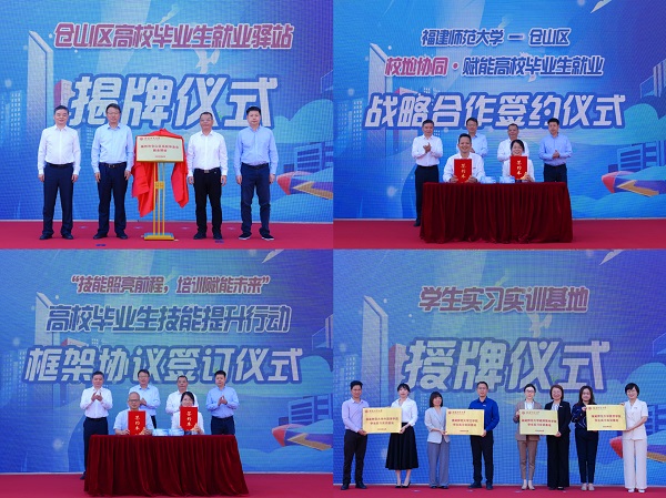 双方签订《毕业生就业战略合作协议》和《毕业生技能提升行动框架协议》,共建“仓山区高校毕业生就业驿站”,向用人单位授牌“学生实习实训基地”。招聘会引入150家用人单位,提供涵盖教育、文化、科技等多个重点领域的实习与就业岗位3468个,在就业驿站设置了政策宣传展区和AI促就业专区,并通过福州市“福你就业”平台同步直播带岗。校地领导深入招聘会现场,与用人单位、毕业生亲切交流,鼓励毕业生积极扎根仓山沃土就业创业。