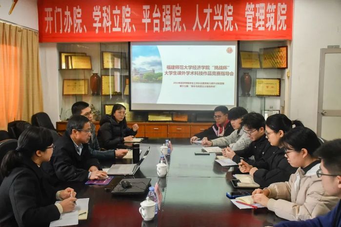 近日,经济学院举办“挑战杯”全国大学生课外学术科技作品竞赛专家指导会,打磨备赛项目,提高项目质量,进一步锻炼同学们的创新思维、提升创新能力。活动邀请了福建社会科学院经济研究所伍长南教授对项目开展点评与指导。院党委副书记叶龙祥、经济学系叶琪教授、院团委负责人陈晓晶、备赛团队成员、各年级作品竞赛后备学生代表参加了会议。