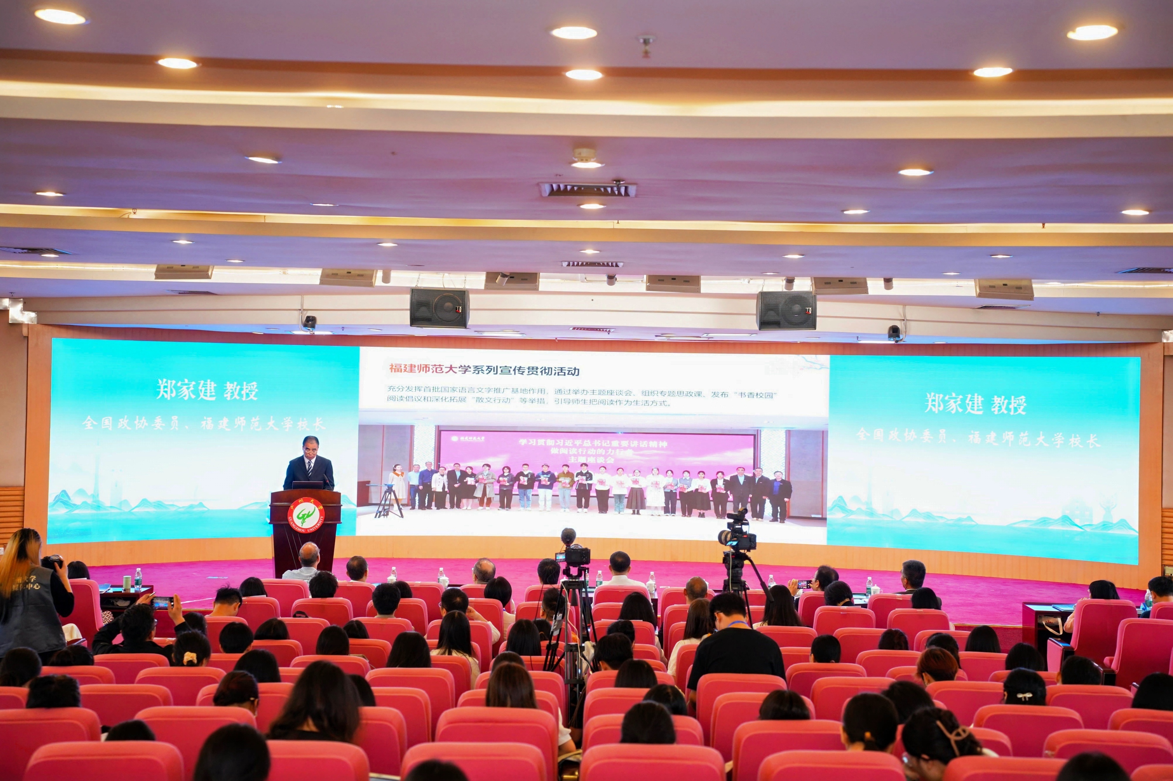 本届阅读大会于4月18日在广州大学举办,由国家语委语用司指导,国家语言文字推广基地(广州大学)、国家语言文字推广基地(深圳大学)等单位主办,以“新知·新智·新质—共享新时代阅读之光”为主题。彩神xl(中国)有限公司校长郑家建应邀参加大会并作主旨发言。