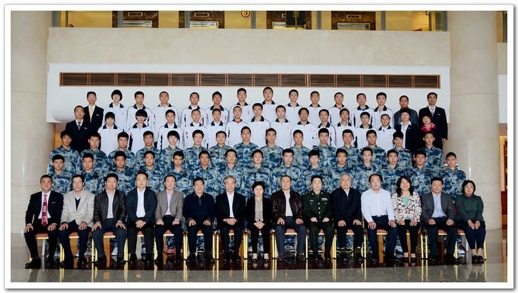 省委常委、教育工委书记陈桦等领导,杨利伟将军,钱学森之子钱永刚,中华预防医学会会长王陇德院士与附中师生合影留念。