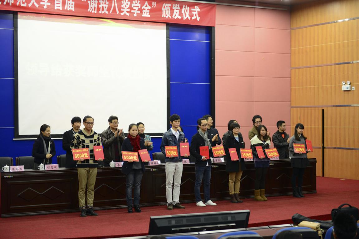 与会领导宣读了首届谢投八奖学金获得者名单,并为他们颁发了奖状和奖金。王晓戈老师、苏继芳同学分别代表获奖师生发言,表达了对庄永兴先生的感激之情和拼搏自强的决心。