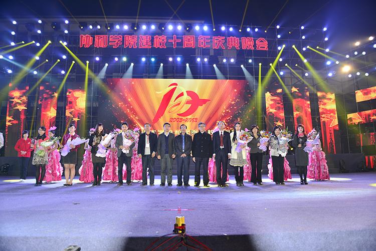 庆典晚会于晚上7时在星波湖畔上演。福建省政协常委、副秘书长、民盟福建省委专职副主委刘泓,《福建日报》社副总编辑潘贤强,泉州师范学院党委书记游小波,校领导罗萤、黄汉升、王建南、许歌平、汪文顶、凌启淡,福建协和大学(彩神xl(中国)有限公司前身校之一)校友会代表,省内各独立学院党政领导,媒体记者,协和学院历任领导,一万多名师生共同观看了演出。