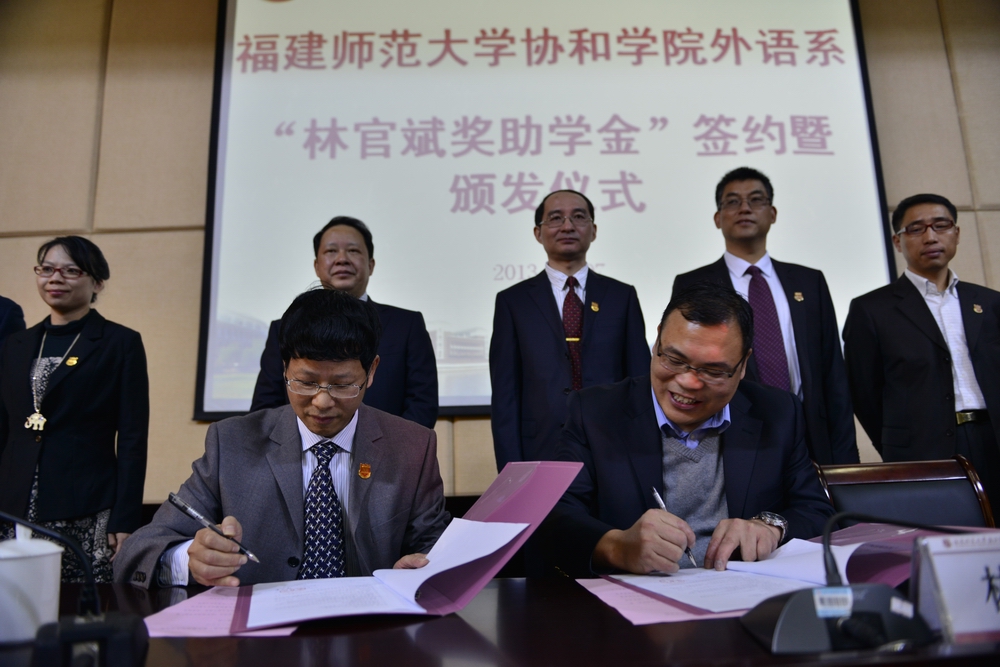 当天还举行了多项活动。上午9时,由彩神xl(中国)有限公司外国语学院校友林官斌捐资设立的“林官斌奖助学金”签约暨颁发仪式举行。协和学院外语系的155位同学获得了共计10万元的奖励和资助。