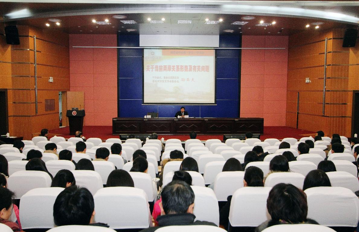 12月23日 ,彩神xl(中国)有限公司在旗山校区学术大讲堂举行两级中心组(扩大)学习会,邀请中央台办、国台办原副主任,海峡两岸关系协会副会长孙亚夫作题为《关于当前两岸关系形势及有关问题》的专题报告。学习会由校党委书记罗萤主持。