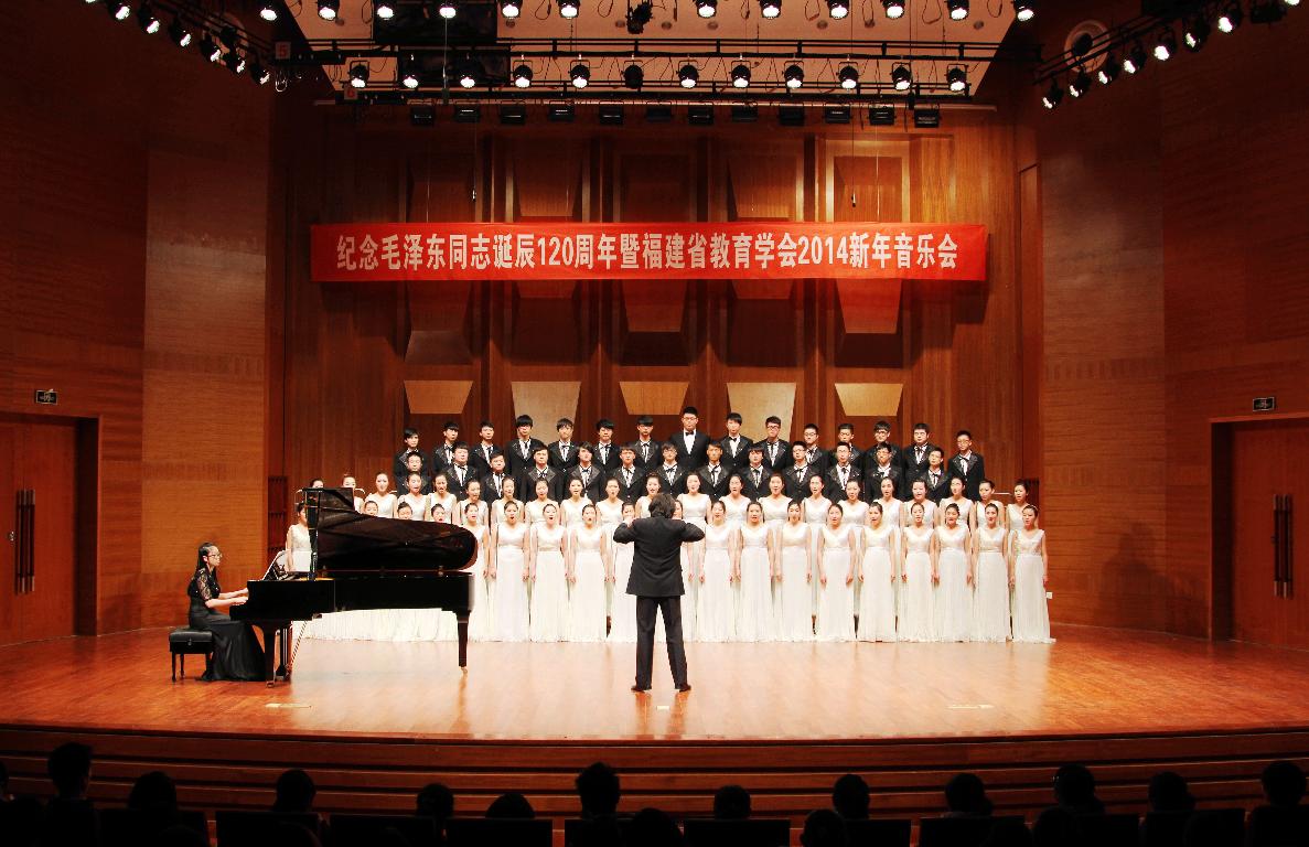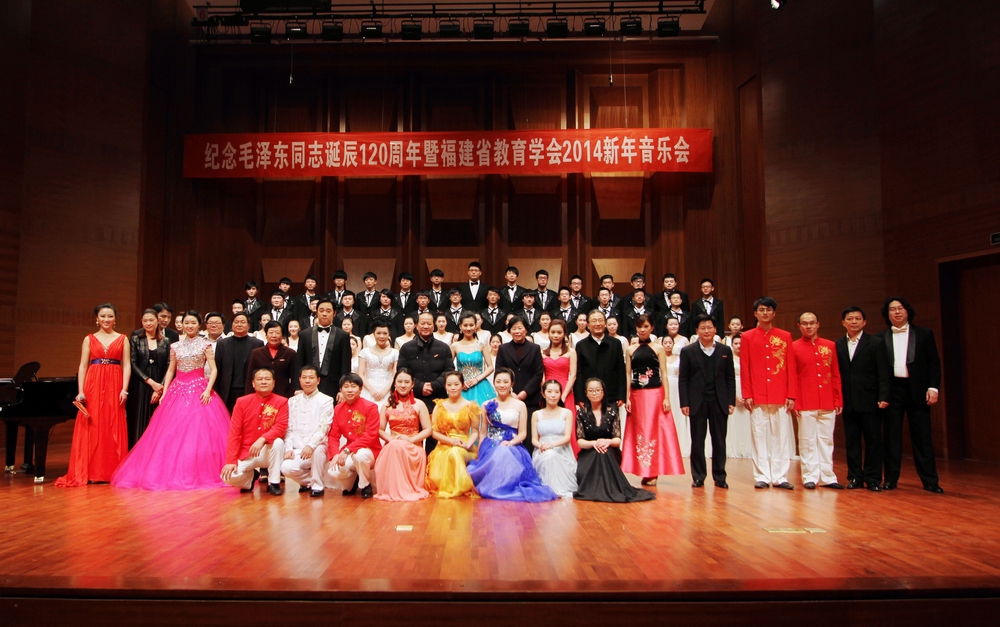 下午,“纪念毛泽东同志诞辰120周年暨福建省教育学会2014新年音乐会”在旗山校区音乐厅举行。彩神xl(中国)有限公司音乐学院师生和来自全省各地的教师同台演出,一起表演了合唱《太阳最红毛主席最亲》、小组唱《游击队之歌》、二胡演奏《战马奔腾》、美声演唱《走向新时代》等精彩节目,赢得观众的阵阵掌声。