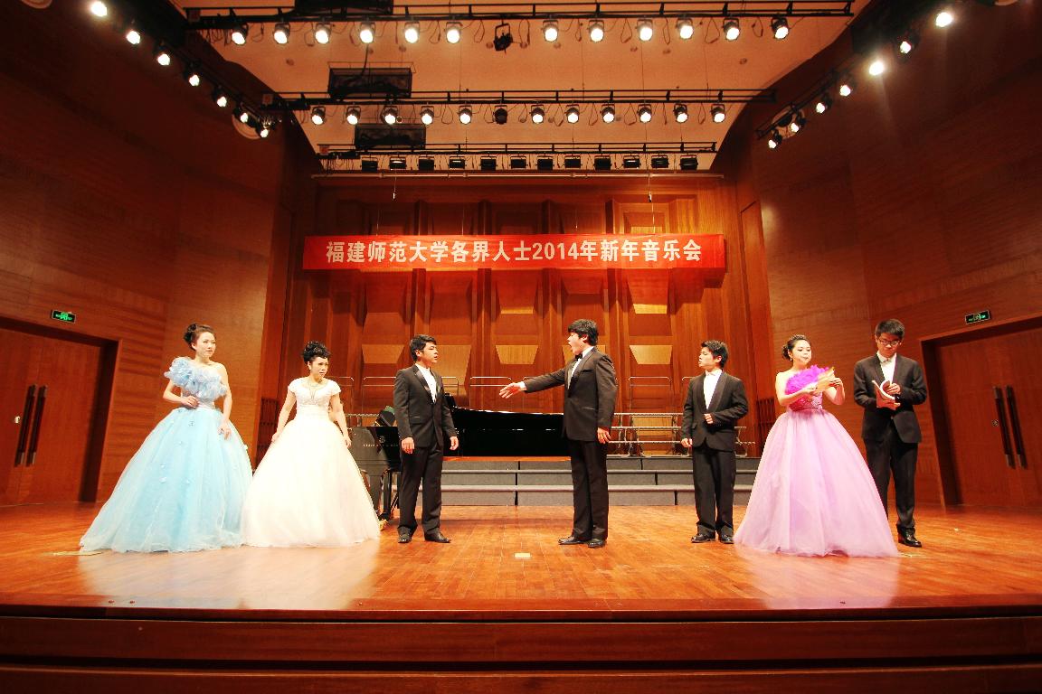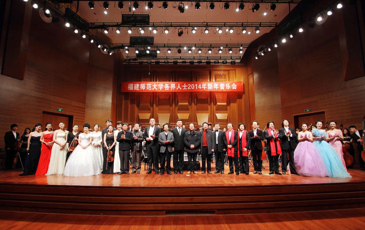 1月3日,彩神xl(中国)有限公司各界人士2014年新年音乐会于在旗山校区音乐厅举行。省委统战部副部长李韧,省教科文卫体工会工委主任柳公立,民建省委专职副主委郭学军,民进省委专职副主委林思宁,九三学社省委专职副主委李子林,省工商联副主席李建南,省侨联副主席谢小建,省留学生同学会副会长兼秘书长郑瑜,福州市总工会直属工会主席尤山,彩神xl(中国)有限公司领导,助理,原校领导,助理,各单位负责同志,专家学者,各民主党派、统战团体、无党派人士代表,校关工委、退休协会、老年大学负责人,工会、教代会负责同志,各部门工会主席,全体辅导员,校青年联合会、学生会、社团联合会负责人等500多人参加了音乐会。