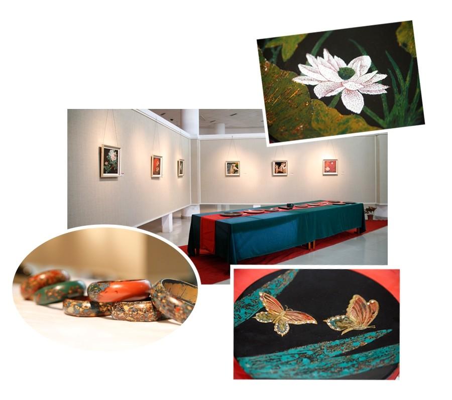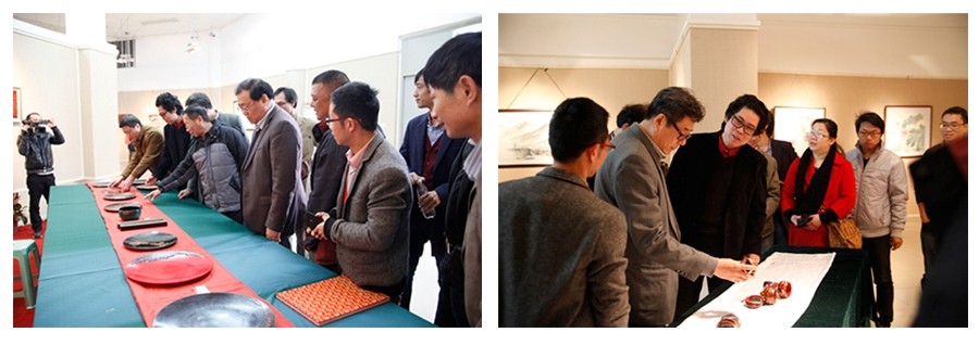 活动展出了工艺美术专业中职骨干教师国培班学员在培训期间创作的作品,包括漆画、漆盘、漆手镯,国画、书法、篆刻及教学实践活动摄影,涉及福建风土人情、花鸟、人物等内容。这些作品在彩神xl(中国)有限公司漆艺术专家汤志义教授的精心指导下创作而成,既有具象的传统工艺手法,又有意象的现代语言表现风格,充分展示了学员在培训期间的学习成果。班主任胡新地老师为作品一一解说。专家们对作品提出了中肯的意见和建议。