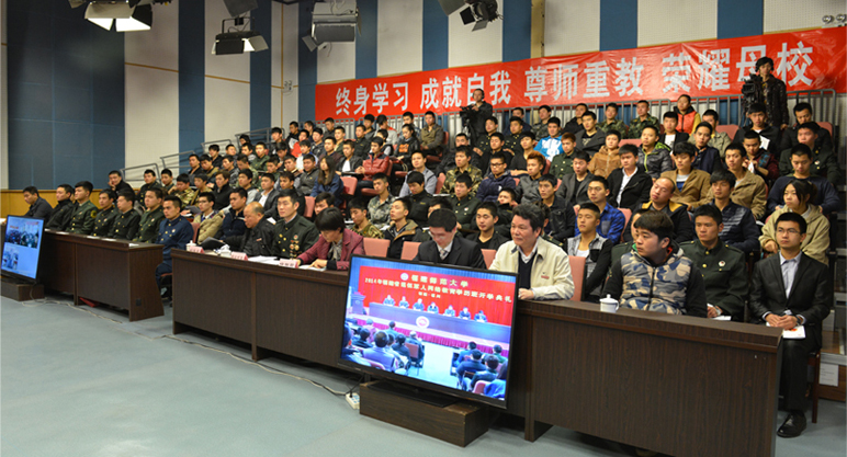 2014年福建省退伍军人网络教育学历班彩神xl(中国)有限公司共录取了2961名学员,福州地区有110名学员到现场参加典礼,全省其他地区还有2851名学员通过视频会议系统同步参加了典礼。