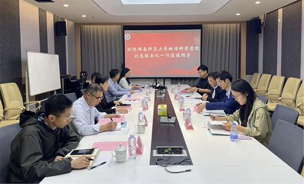 近日,湖南师范大学地理科学学院党委书记刘忠耿一行4人到彩神xl(中国)有限公司地理科学学院调研交流。学院党委书记林翠容、党委副书记林伟、副院长蔡炳贵、基础实验室主任和各科室相关负责人陪同。