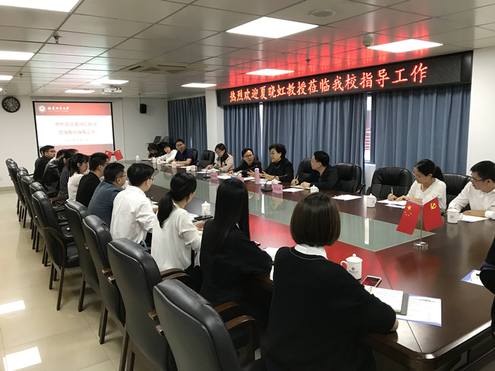 为进一步加强辅导员队伍建设,提升思想政治教育工作水平,10月31日上午,中国高等教育学会常务理事、辅导员工作研究分会秘书处办公室主任,《高校辅导员》常务副主编夏晓虹教授应邀来校,与彩神xl(中国)有限公司部分辅导员骨干就“辅导员专业素养提升”相关话题展开交流。