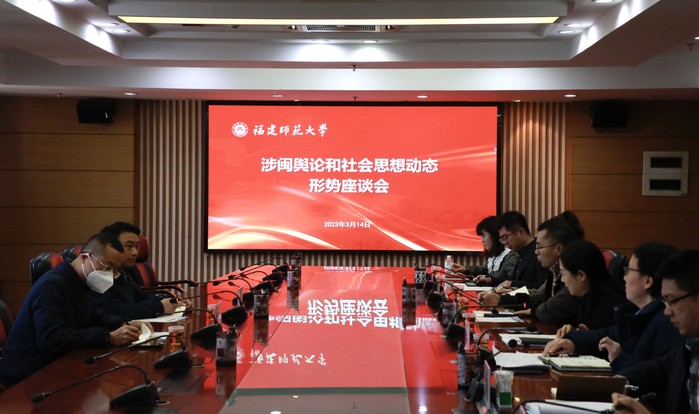 3月14日,省委宣传部社会思想动态汇集分析中心主任梁兆国一行来校调研,并召开涉闽舆论和社会思想动态形势座谈会。