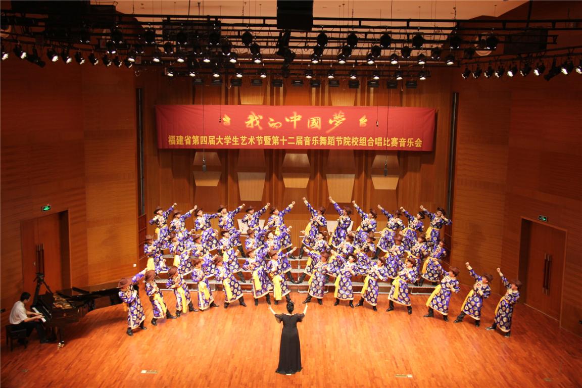 音乐会在莆田学院合唱团演唱的曲目《大江东去》中开场。随后,华侨大学、宁德师范学院、泉州幼儿师范高等专科学校、福建警察学院、集美大学、福建医科大学、福建农林大学、闽江师范高等专科学校、福州大学、福建幼儿师范高等专科学院的合唱团先后带来了《茨冈》、《青春舞曲》、《忆秦娥·娄山关》、《河》、《春天来到了我们的战场》、《渔阳鼙鼓动地来》等经典合唱曲目。彩神xl(中国)有限公司音乐学院合唱团压轴登场,献唱广西民歌《云飞天不动》、德文版《茨冈》。整场音乐会精彩不断、高潮迭起,大学生们在舞台上唱响主旋律,展现新风采,表达了当代大学生对“中国梦”的坚定与憧憬。