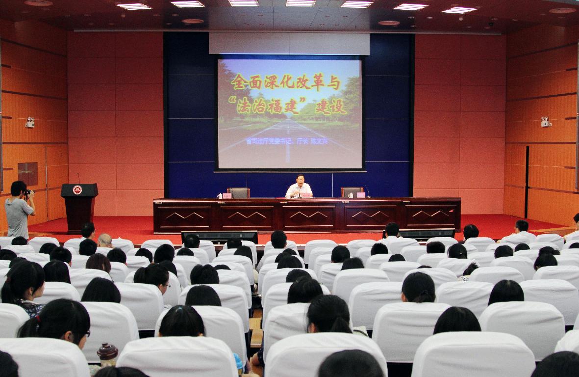 黄汉升在总结讲话中指出,陈义兴厅长的报告视野开阔,内容丰富,对于我们深入学习贯彻十八届三中全会精神、习近平总书记系列重要讲话精神,认真贯彻中央、省委关于全面深化改革的决策部署,全面落实依法治国方略、推进“法治福建”建设,不断提高依法治校水平,加快学校治理体系和治理能力现代化,具有重要的现实意义和指导作用。他号召各单位要认真学习、深刻领会陈厅长报告的内涵实质,结合学校改革发展和各单位工作实际,加强规范管理,进一步提升依法治教、依法办学的能力,进一步提高师生的法制意识和法律素养。