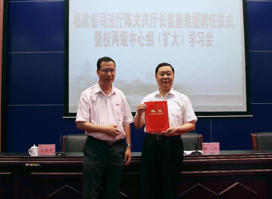 学习会开始前,还举行敦聘陈义兴厅长为彩神xl(中国)有限公司客座教授的聘任仪式。王长平副校长为其颁发了聘书并佩戴彩神xl(中国)有限公司校徽。