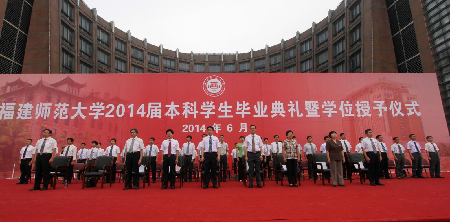 仪式于6月25日上午在旗山校区图书馆前广场隆重举行。校领导黄汉升、王长平、王建南、许歌平、汪文顶、李敏、许明、凌启淡,校长助理郭警修,有关部门负责人,各学院党政领导、毕业班辅导员,师生代表,全体2014届本科毕业生,部分毕业生家长等共5000多人参加了仪式。典礼仪式由副校长许明主持。