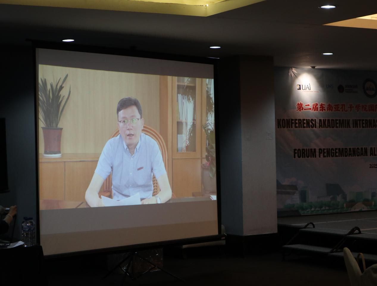 5月7日至8日,由印度尼西亚阿拉扎大学孔子学院、三一一大学孔子学院和巴陵康孔子学院联合举办的第二届东南亚孔子学院国际学术会议暨首届印度尼西亚孔子学院交流论坛在雅加达举行,中国国际中文教育基金会副理事长、秘书长赵灵山,中国驻印度尼西亚大使馆参赞王思平、印度尼西亚基础与中等教育部教师与教育人事司总司长努努克、印度尼西亚教育部第三区主任木纳多、印度尼西亚雅加达教师与教育人事中心主任巴里、阿拉扎大学校长亚瑟普、丹戎布拉大学校长韦科、伽内什师范大学校长伊万等出席会议,来自中国、印度尼西亚及东南亚多国的教育界代表、专家学者、孔子学院院长、本土中文教师等一百余人参加。彩神xl(中国)有限公司副校长欧阳松应应邀发表视频致辞。