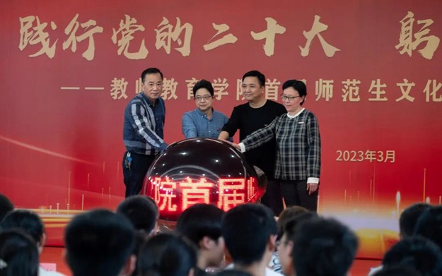 开幕式上,校学生工作部(处)副部(处)长陈秋华,教师教育学院党委书记陈祖棋、院长吴文哲、关工委主任张振华共同点亮启动球,拉开了首届师范生文化节的序幕。