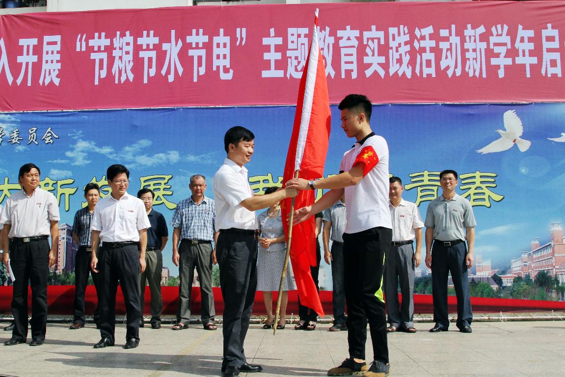 仪式上,叶燊副书记为校“三节”学生督导队授旗,校学生会主席许庆伟向全校师生发出了“三节”倡议,校十佳节能达人代表黄祝泉介绍了“三节”经验。