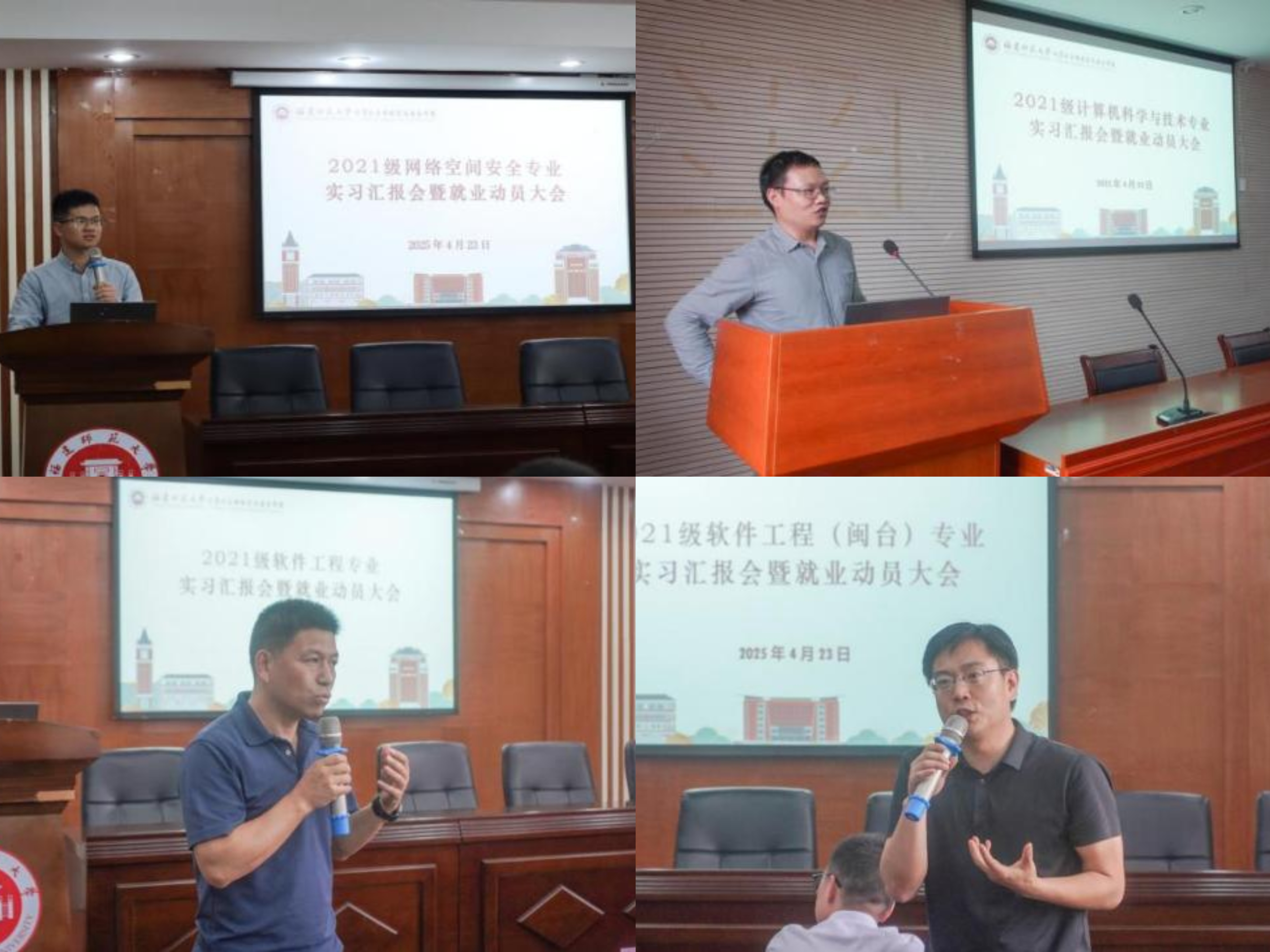 近日,计算机与网络空间安全学院分专业召开2025届本科毕业生实习汇报会。学院副院长陈黎飞,各系主任、副主任,各专业实习工作负责人,教师代表,毕业班辅导员以及2025届本科毕业生参加会议。