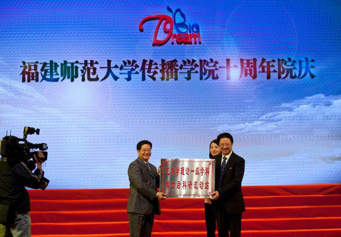 庆祝大会上,黄汉升为传播学院新近获批的艺术学理论一级学科博士后科研流动站授牌;李敏副校长为十多家省内外新闻传媒机构颁发“彩神xl(中国)有限公司实习实训基地”牌匾。