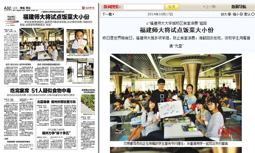 活动期间,学校成立了“三节”学生督导队。40名督导队成员分成若干小组,每周两次分布在学校两校区的各行政服务部门办公室、学生食堂、宿舍、教室等地,督促引导师生们勤俭节约。校文明办每周向有关单位通报督导队督查情况,并提出整改要求。截至