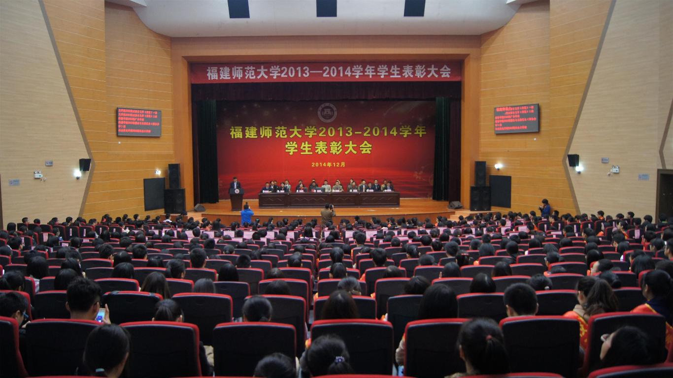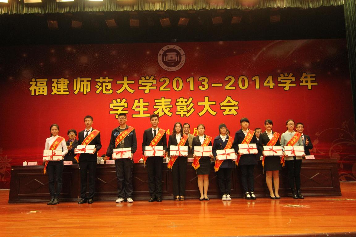 叶燊副书记宣读了2013-2014学年“国家奖学金”、“国家励志奖学金”获得者名单,李敏副校长宣读了2013-2014学年校“先进班集体”、“三好学生标兵”、“三好学生”、“优秀学生干部”、“免监考班级”以及“优秀学生奖学金”获得者名单。社会历史学院曹慕杰同学和经济学院陈晓竞同学分别代表受表彰先进班集体和个人作了发言,与大家分享他们的成长历程和收获感悟。