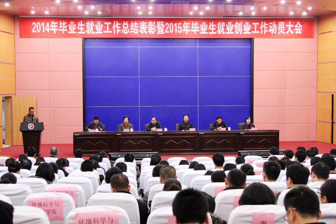 大会对2014年毕业生就业率前6名的地理科学学院、经济学院、公共管理学院、音乐学院、软件学院、体育科学学院,以及签约率前6名的学院,研究生就业率100%的15个学院,获得就业工作创新奖的12个学院,初次就业率高于80%且年终就业率达100%的38个专业,年终就业率较上一年度提高幅度居全校前六名且年终就业率超过90%的6个本专科专业,24位就业贡献奖和33位就业工作先进个人获得者进行了表彰。
