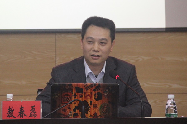新华网福建分公司常务副总编敖春磊为志愿者培训