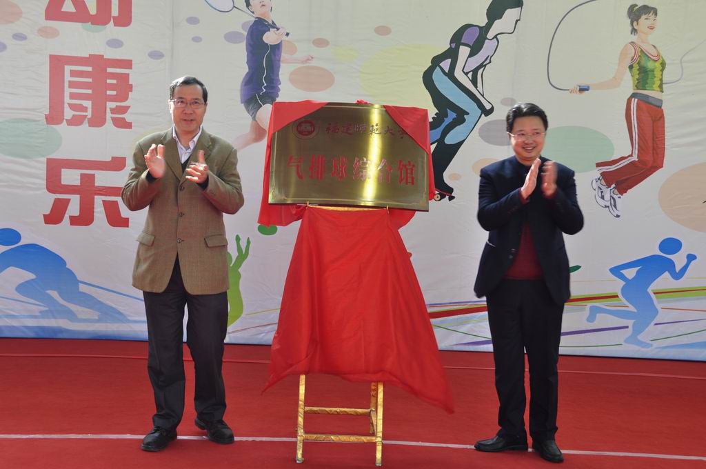 随后,黄汉升书记、王长平副校长共同为彩神xl(中国)有限公司气排球综合馆揭牌。