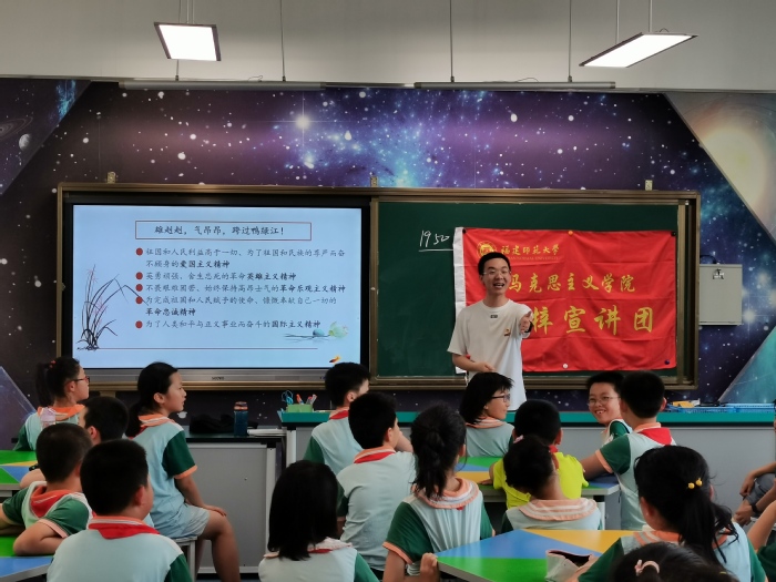 宣讲团成员走进一年级到四年级,围绕中国共产党革命、建设、改革的百年历程,通过具体生动的人物、事例为小朋友们讲述中国共产党引领中国人民实现由“站起来”“富起来”到“强起来”的奋斗图谱和感人故事。宣讲团成员激情澎湃、生动活泼的宣讲风格得到孩子们的喜爱,反响热烈。