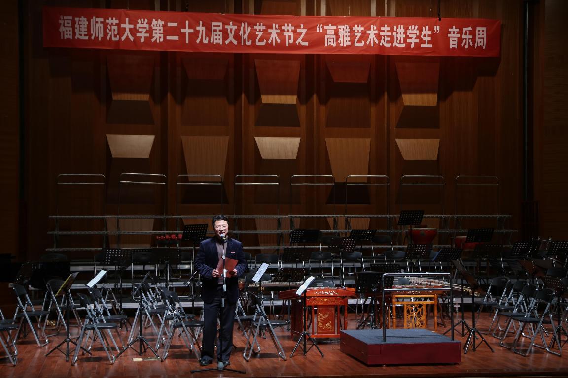随后,音乐学院师生带来了民族管弦乐合奏《金蛇狂舞》和《花好月圆》;音乐剧选段《花儿为什么这样红》;小提琴独奏《流浪者之歌》;歌曲《土家土》、《你是这样的人》;古筝齐奏《云之南》等节目,演出形式多样、精彩纷呈,现场高潮迭起、气氛热烈。最后,伴随着《黄河大合唱》雄壮的乐曲声,音乐会落下了帷幕。