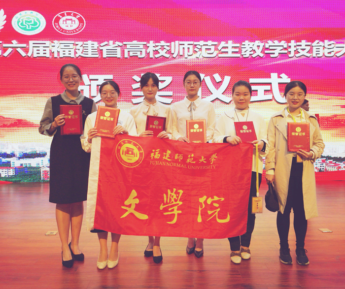1115日至17日,第六届福建省高校师范生教学技能大赛决赛在集美大学举行。文学院学生表现优异,选派的6名学生全部获奖,且一等奖数量创历史新高。其中,2016级汉语言文学(师范)专业学生郭若雯、林燕玉、刘童欣、洪怡馨、林思媛获得一等奖,蔡秋婷获得二等奖。刘心和李勤获得“优秀指导老师”称号。