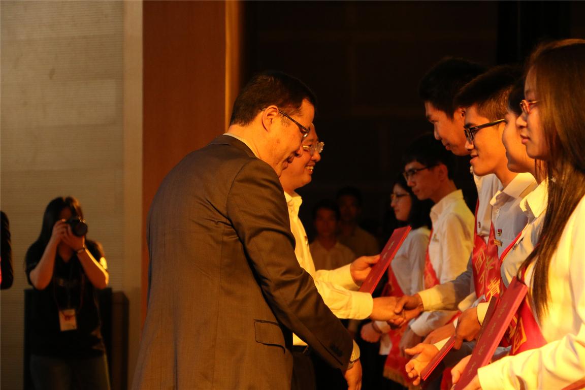 校领导为受表彰学生代表颁奖