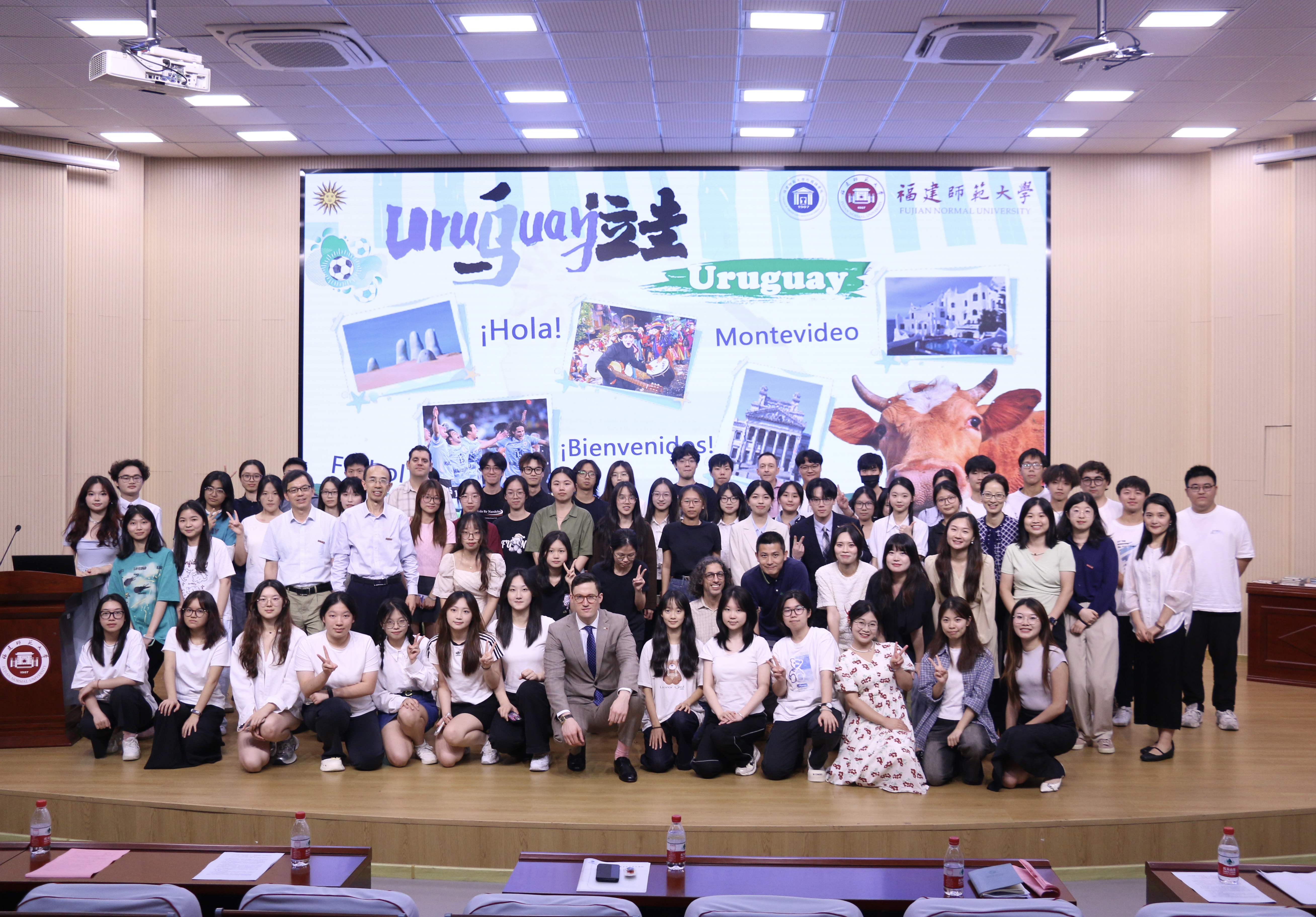 期间,法昆多·费尔南德斯一行参观了乌拉圭女性诗人作品展及学生文化简报比赛优秀作品展,观看了彩神xl(中国)有限公司学生表演的中西双语歌曲、文学舞台剧,参与了知识互动游戏,并欣赏了师生原创主题视频。法昆多·费尔南德斯围绕“乌拉圭文化全景-足球、音乐、文学对话世界”主题发表了精彩演讲。在活动中,同期举行了文化简报比赛颁奖仪式,对学生的实践成果给予表彰。