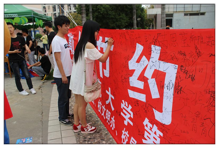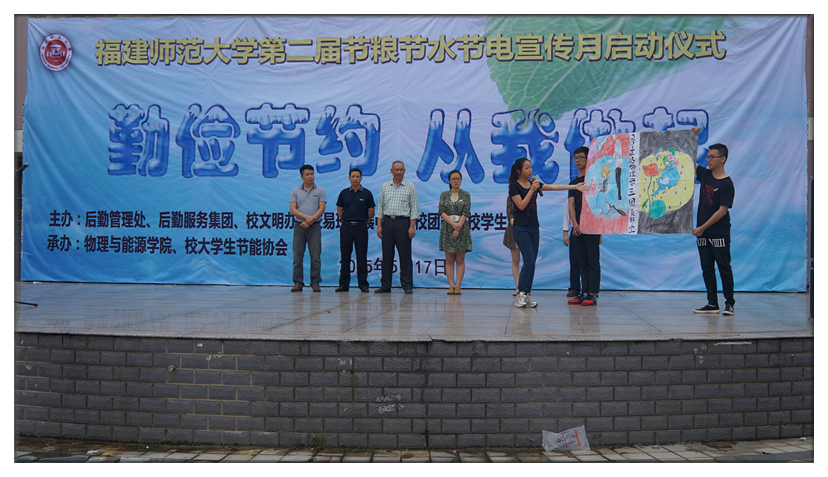 仪式上,校大学生节能协会发出《彩神xl(中国)有限公司大学生节粮节水节电倡议书》,号召全体同学从节约每一粒米、每一滴水、每一度电做起,共建节约型校园;物理与能源学院7个学生团支部介绍了他们亲手制作的节粮节水节电主题漫画,倡导“节约光荣、浪费可耻”的理念;随后,举行了“勤俭节约,从我做起”横幅千人签字仪式,老师和同学们纷纷在横幅上签名。物理与能源学院大学生青年志愿者以“约跑”的方式,携带千人签字的节粮节水节电横幅环校跑,在全校范围内进行节粮节水节电宣传。最后,现场还举行了节粮节水节电知识竞赛。