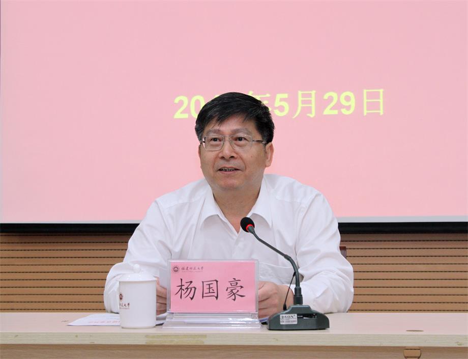 会议于5月29日上午在旗山校区第九会议室召开。省委组织部副部长杨国豪,省委组织部干部一处调研员胡志芳,校领导,全体中层正职干部,附属单位党政主要负责人等参加了大会。