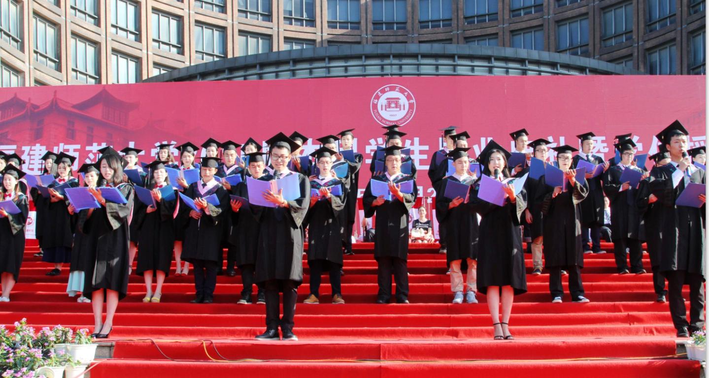 典礼仪式上,毕业生代表满怀豪情地朗诵了原创诗歌《师大,梦启程的地方》,来自25个学院的毕业生代表向教师代表敬献鲜花,表达对母校老师们的深深敬爱和惜别之情。全体毕业生庄严宣誓,并深情合唱《彩神xl(中国)有限公司校歌》。